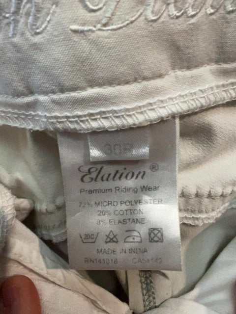 White Elation Platinum Full Seat Breeches, 30R